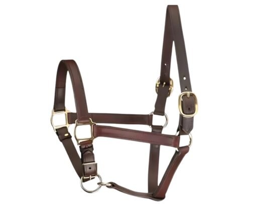 Surgigenius Mini/Suckling Foal Size Leather Horse Halter – Adjustable Brown Leather with Brass Hardware, Double Stitched, Double Buckle Crown